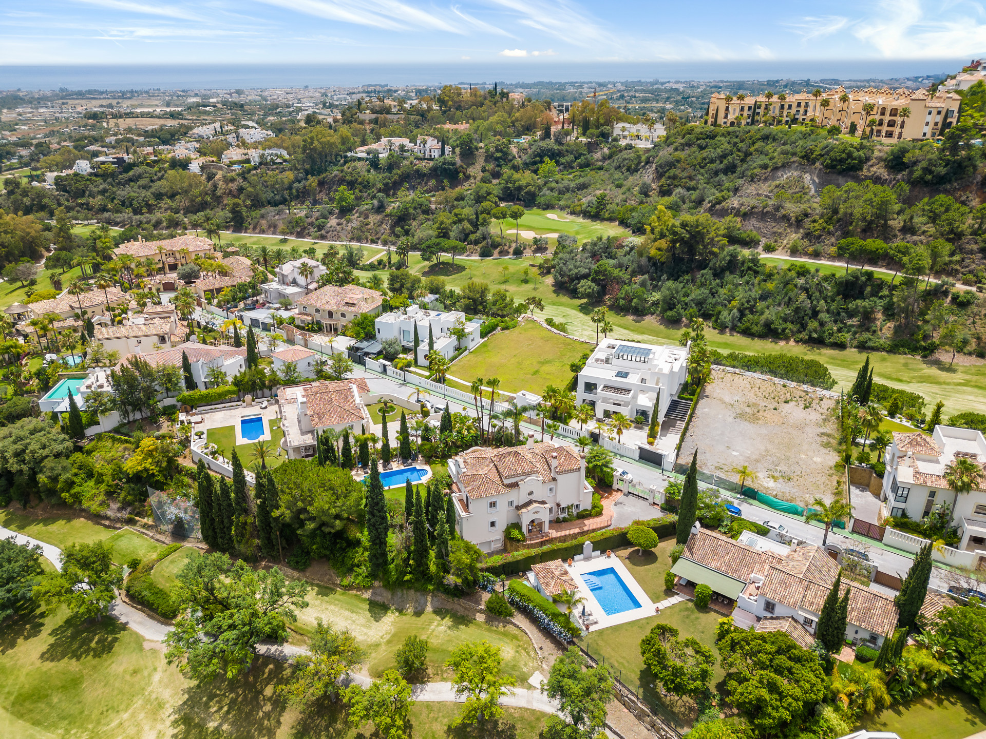 Located within the exclusive gated community of La Reserva de La Quinta in Benahavís, this elegant Andalusian-style villa enjoys a prime frontline golf position surrounded by lush greenery, offering privacy, space and a refined Mediterranean lifestyle. A striking double-height entrance hall leads to bright living areas including a spacious main lounge and a separate sitting room, both opening onto generous terraces ideal for indoor-outdoor living. The main house features four en-suite bedrooms, three on the upper floor with private terraces overlooking the golf course and gardens, while a fourth bedroom on the ground level provides direct garden access, perfect for guests. A fully equipped kitchen with breakfast area overlooks the garden, complemented by a guest toilet. The lower level includes a self-contained apartment with bedroom, living area and bathroom, currently used for guests but easily convertible into a closed garage for up to three cars. Set on a plot of over 1,400 m², the property offers landscaped gardens with automatic irrigation, shaded areas and a heated swimming pool, along with several covered and open terraces for relaxing or dining outdoors. In excellent condition and recently furnished, the villa is equipped with air conditioning, central heating, marble floors, electric shutters, alarm system, video intercom and 24-hour community security, making it an exceptional home or investment on the Costa del Sol.